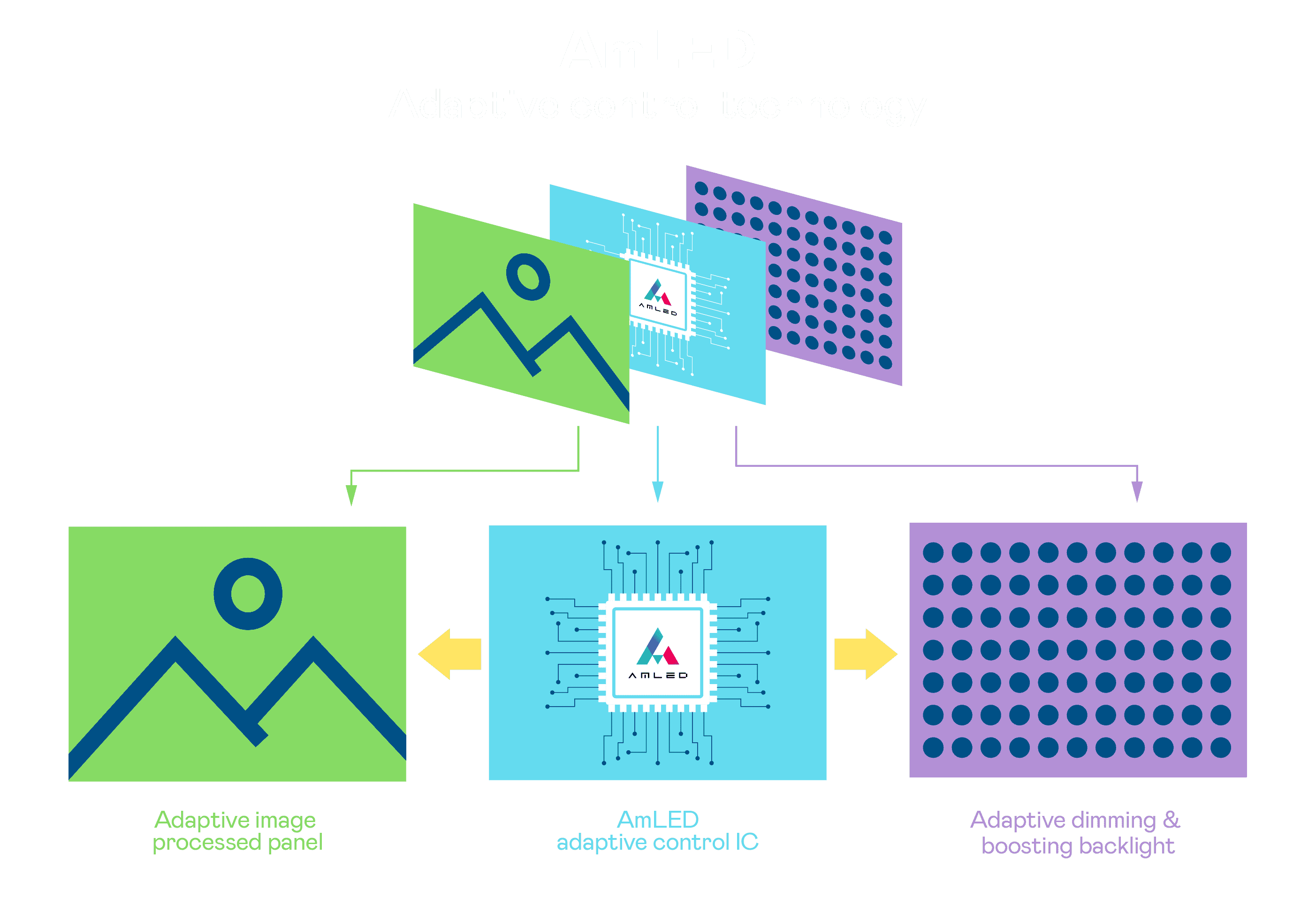 AmLED 具备更省电与低蓝光特性。。与一般的 LED 背光显示技术相比,,,,由于 AmLED 常时处于局部调光状态,,其功耗仅有前者的 50% 左右,,,,同时 AmLED 还具备低蓝光特性,,满足长时间使用的护眼需求。。