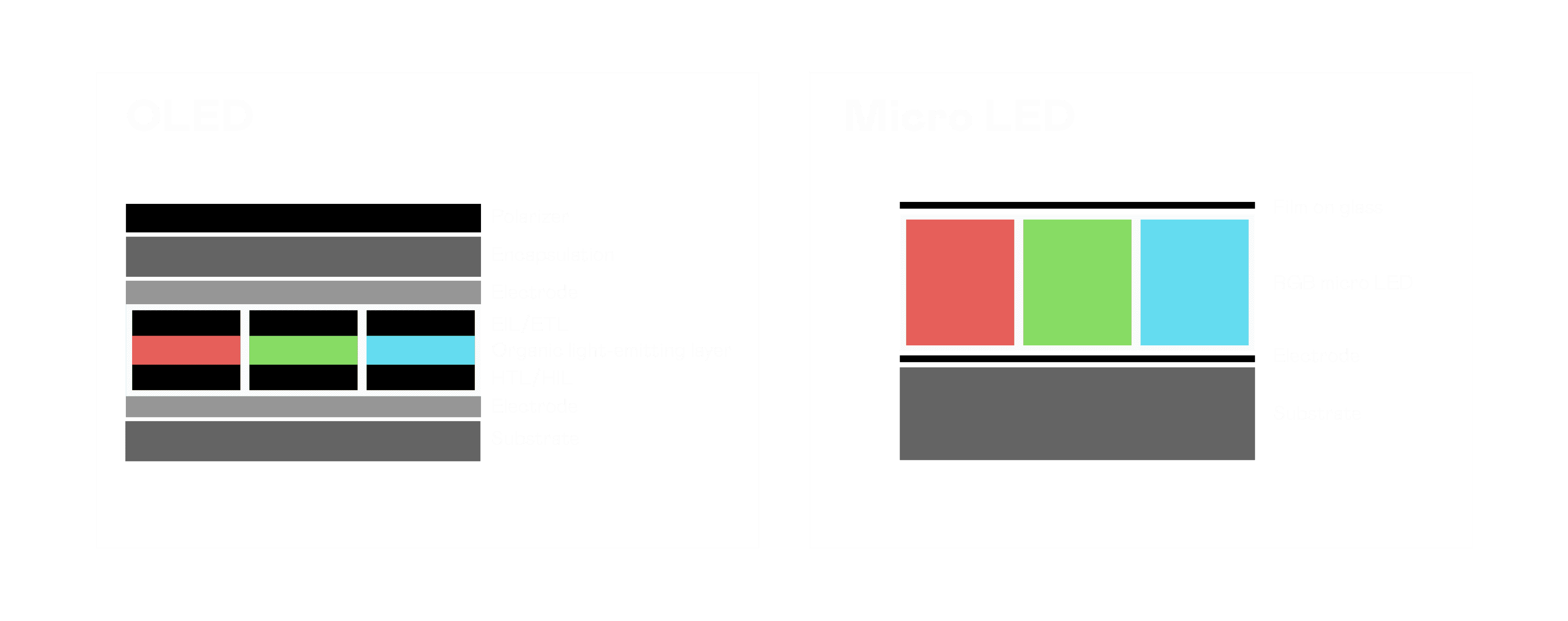 以 LED 做为显示画素,,可让 LED 的发光效率发挥到极致,,从而让显示器具备优异的亮度表现,,,不论是在户外或室内,,均具备出众的显示效果。。。。同时,,,,与使用有机材料的 OLED 相比,,LED 具备更稳定、、、寿命更长的特性,,不仅不会有画面烙印问题,,,,而且更不容易出现故障、、坏点。。。。