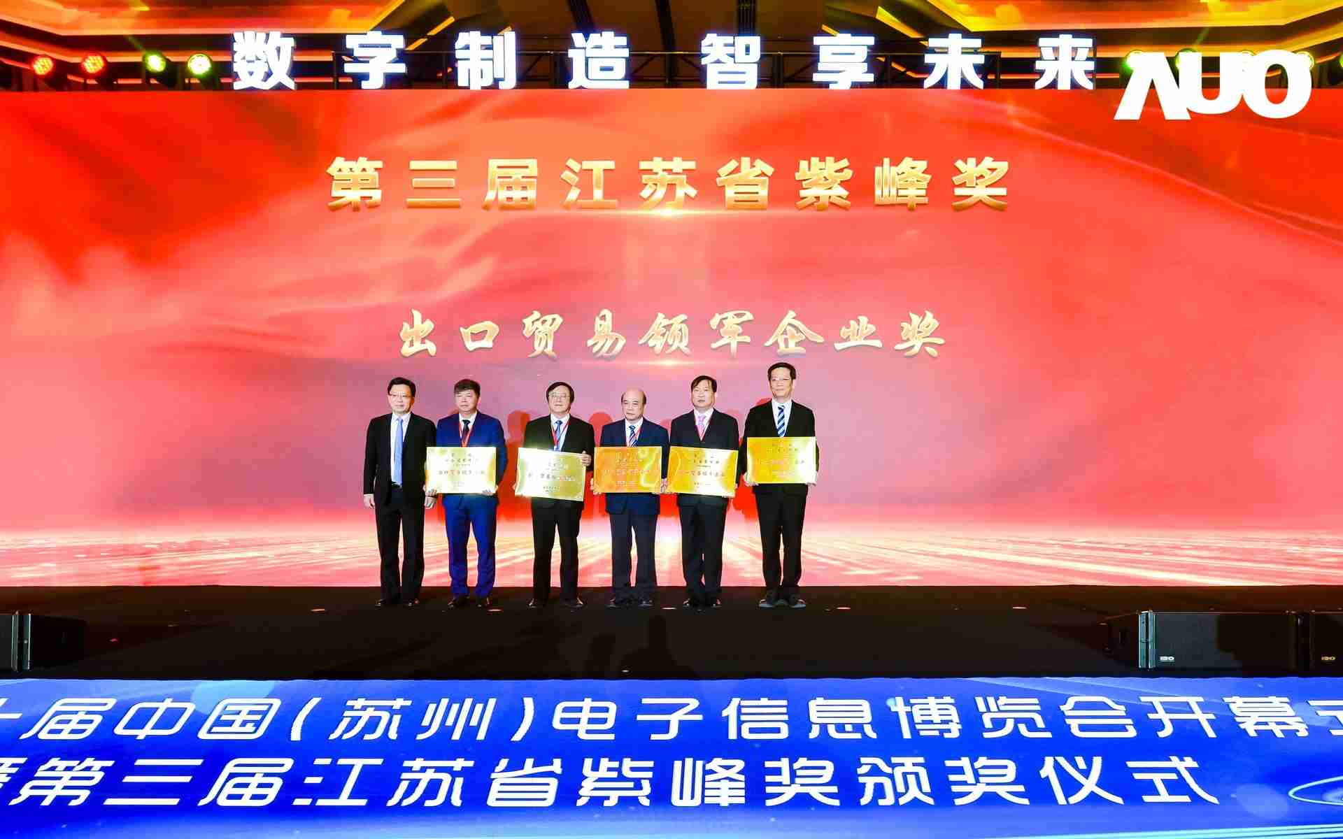 电博会开幕式当天也是第三届江苏省紫峰奖颁奖仪式,,,,省台办、、、、工信厅、、、、商务厅、、、、苏州市相关领导均出席并颁奖。。。该奖项为表彰对江苏高质量发展做出积极贡献的在苏企业,,,由江苏省政府专门设立。。。牛牛游戏光电 (苏州) 总经理郭振明代表上台领奖,,这也是牛牛游戏苏州连续三次蝉联紫峰奖 出口贸易领军企业奖。。牛牛游戏数位总经理赵丽娜女士,,也参与本次开幕式,,上台为本地化赋能签署战略合作协议,,将优质服务资源集合、、、下沉到更多细分行业,,,,为更多地区的制造企业提供数字化转型服务。。。